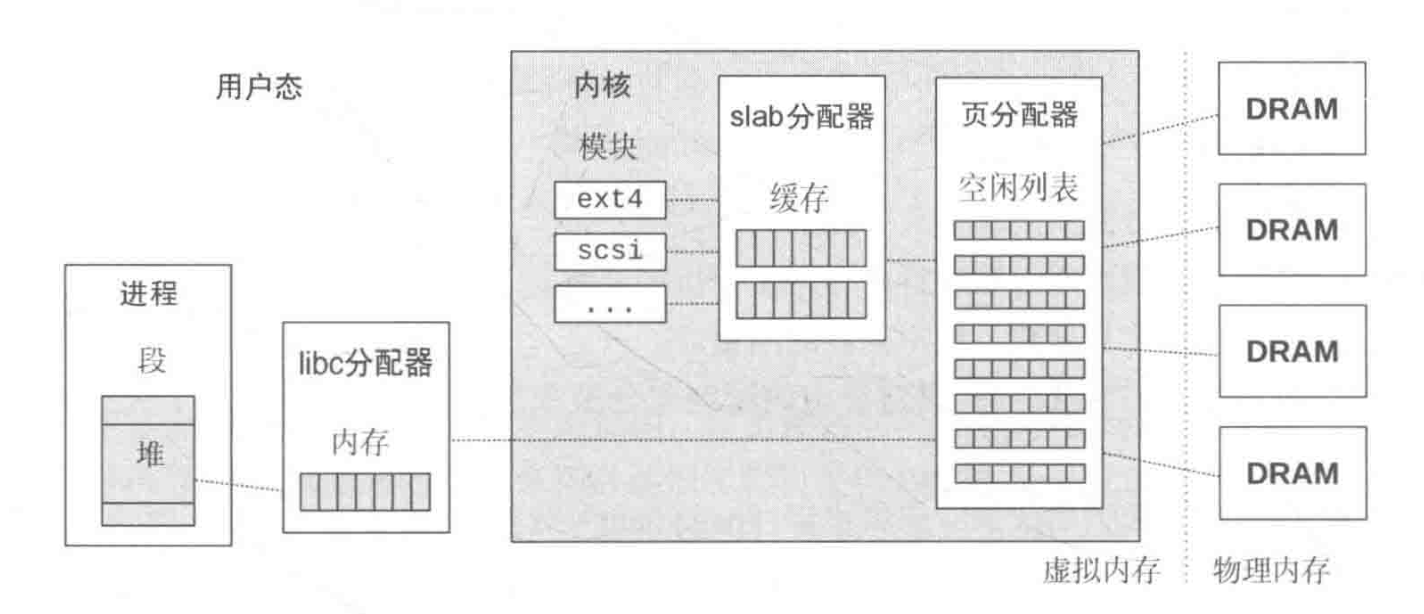 同时,内核软件本身的内存分配需求也从这个空闲内存列表直接获取,一般通过内核内存分配器进行,例如,slab 分配器。